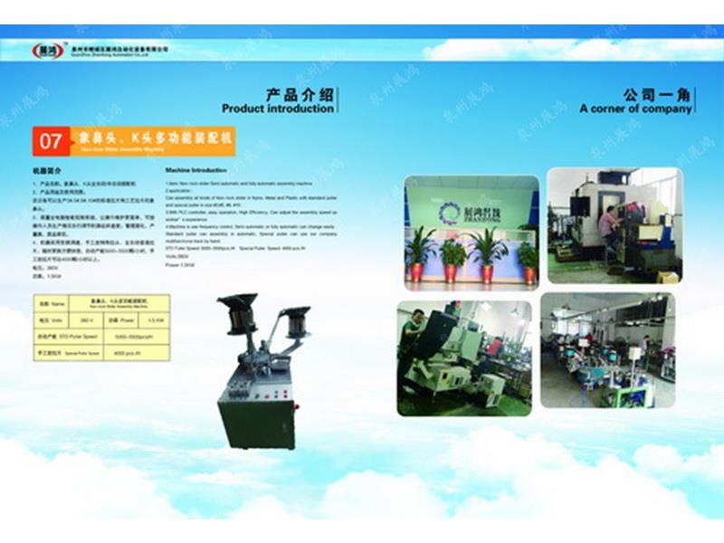 ??泉州市展鴻自動化科技有限公司始創于2003年,是一個集研發、制造、銷售為一體的現代化公司,專業從事研發、生產各類型號的全自動拉鏈頭裝配機。泉州市展鴻自動化科技有限公司始創于2003年,是一家集研發、生產、銷售、服務于一體的現代化拉鏈頭設備智能制造生產企業:專業從事研發、生產各類型號的全自動拉鏈頭智能裝配機。亦可根據不同客戶的需求,提供適合客戶自身需要的“私人定制”式專用拉鏈頭設備及自動檢測拉頭品質一體機。泉州市展鴻自動化科技有限公司始創于2003年,是一家集研發、生產、銷售、服務于一體的現代化拉鏈頭設備智能制造生產企業:專業從事研發、生產各類型號的全自動拉鏈頭智能裝配機。亦可根據不同客戶的需求,提供適合客戶自身需要的“私人定制”式專用拉鏈頭設備及自動檢測拉頭品質一體機。